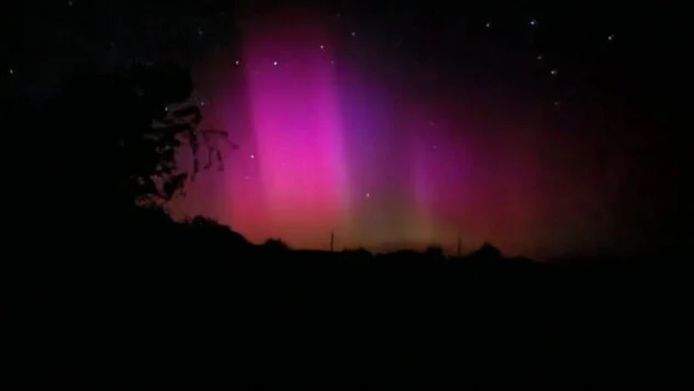 Такий вигляд мало небо над Новим Биковом орієнтовно о 22-й годині 2 травня. Фото від підписниці Суспільне Чернігів....