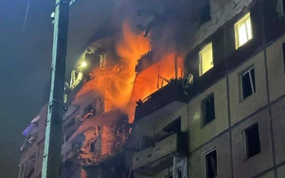 «Звернень від потерпілих з будинку на Оболоні, куди влучили уламки, наразі немає. Внаслідок падіння сталася пожежа на восьмому та дев’ятому повер...