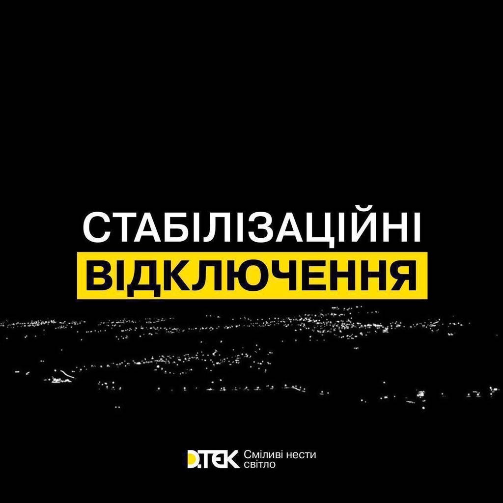 Графіки застосовуватимуться з 19:00 до 23:00, повідомляє ДТЕК.